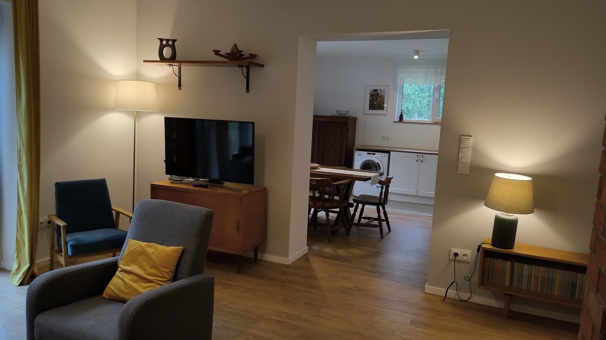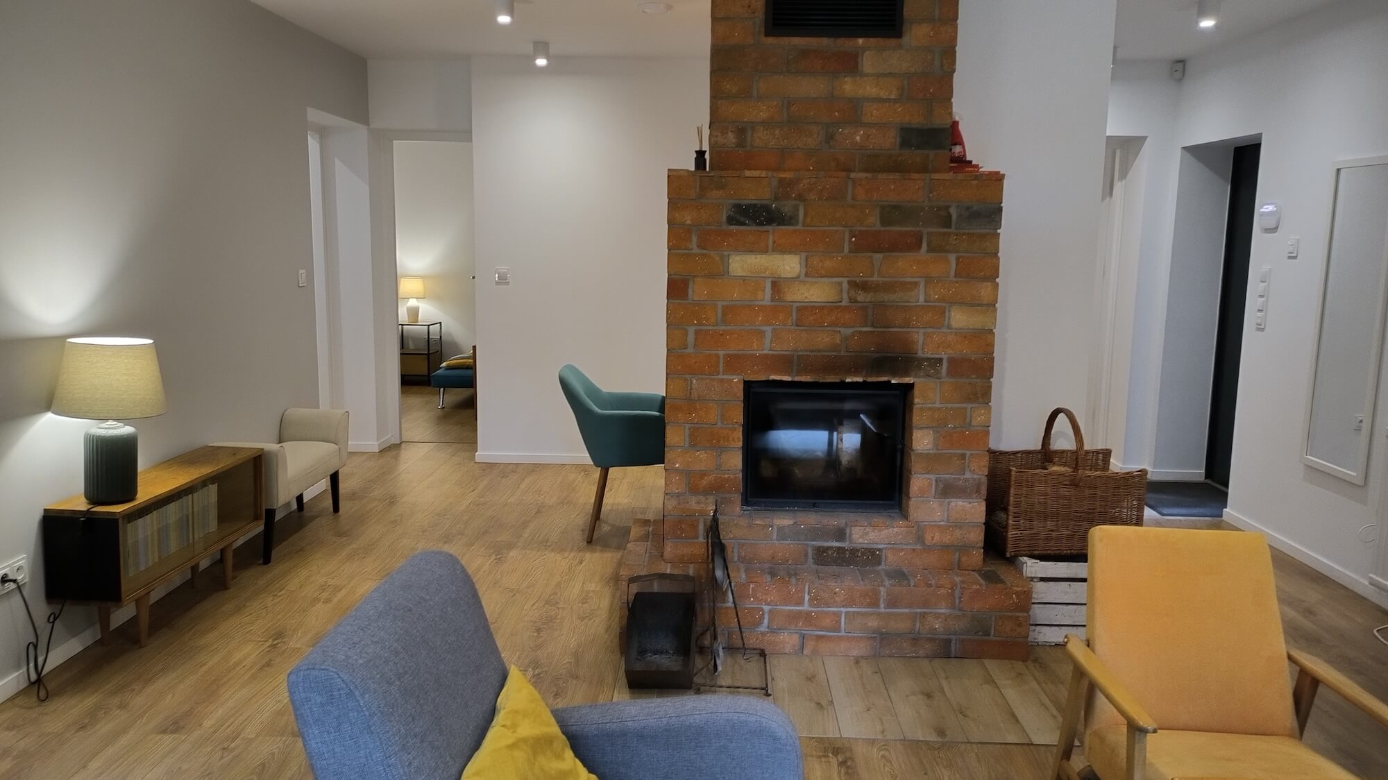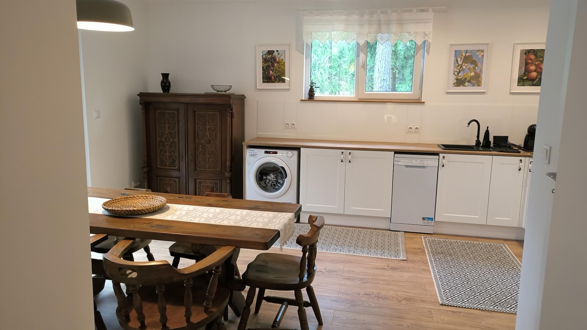 - Wnętrza: Przytulne, z kominkiem